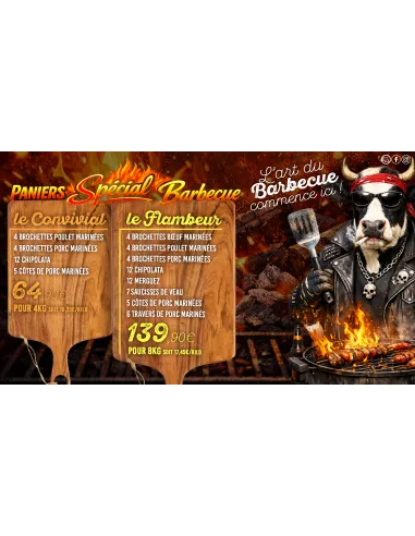 Une offre de produits simples et économiques réunissant les Basics d'un Barbecue réussi! Un panier de 8 Kg au prix moyen de 17.49€ le Kg : difficile de ne pas y succomber !