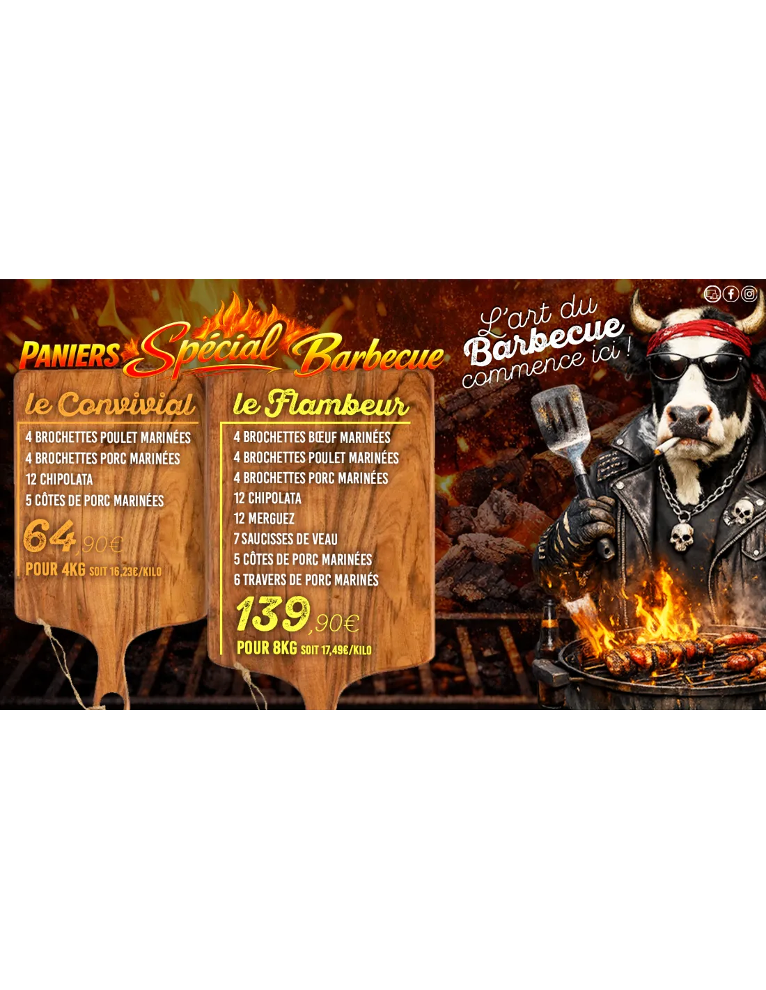 Une offre de produits simples et économiques réunissant les Basics d'un Barbecue réussi! Un panier de 4.00Kg au prix moyen de 16.23€/Kg : difficile de ne pas y succomber !